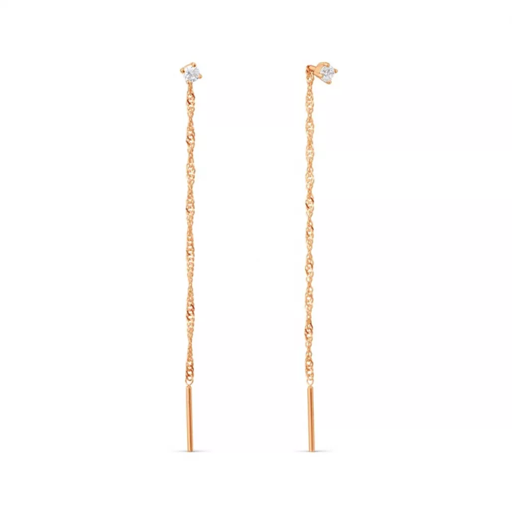 Серьги-продевки с фианитом из золота