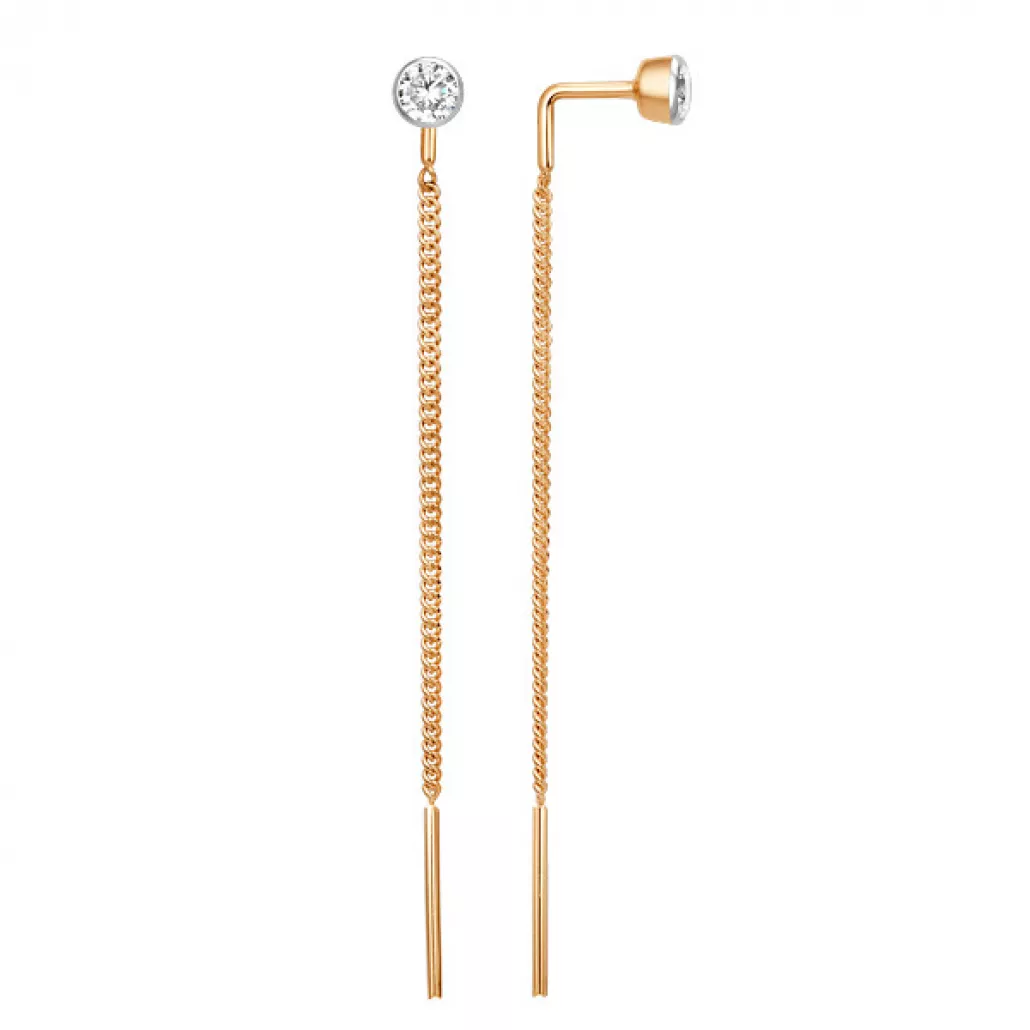 Серьги-продевки с фианитом из золота