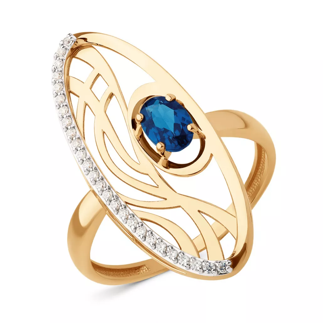 Кольцо с фианитом и топазом из золота