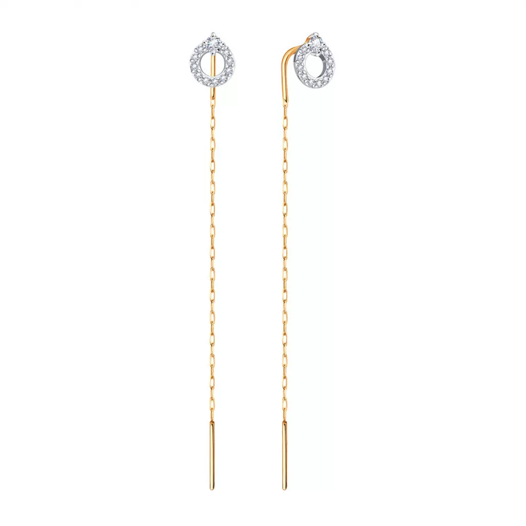 - Серьги-продевки с фианитом из золота